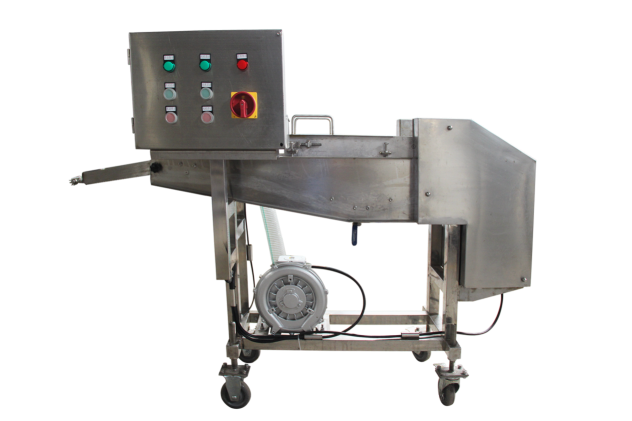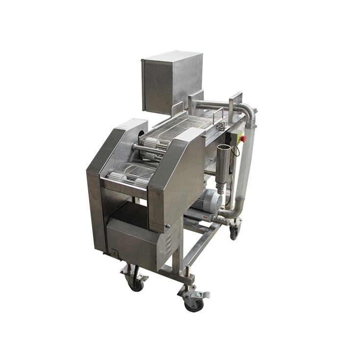 天婦羅裹漿機(jī)自動完成產(chǎn)品的上漿過程,稀漿、濃漿均可。產(chǎn)品經(jīng)上下網(wǎng)帶,在漿液中沾滿漿液,上漿后的產(chǎn)品經(jīng)風(fēng)淋,避免過多的漿液帶入到下一工序。