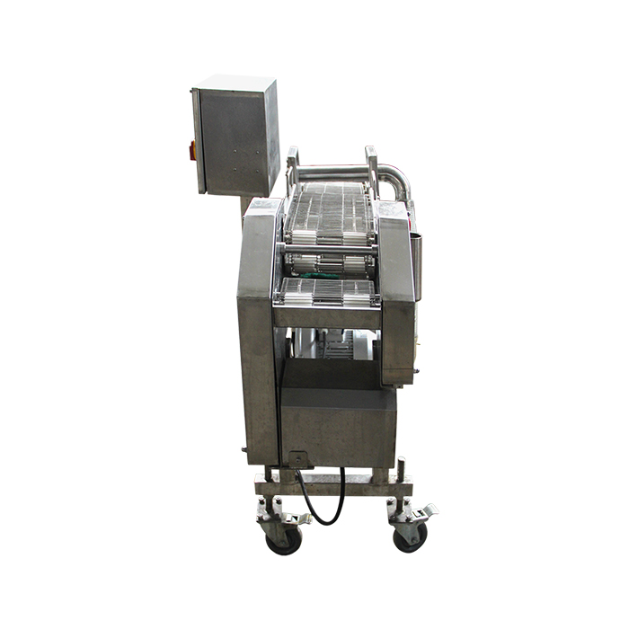天婦羅上漿機(jī)與自動上面包屑機(jī)配合使用,天婦羅浸漿機(jī)可單獨(dú)使用。裹漿機(jī)對市場上流行的漢堡肉餅、麥樂雞塊、魚香漢堡肉餅、土豆餅、南瓜餅、肉串等產(chǎn)品進(jìn)行上漿處理,是快餐店、配送中心、食品工廠理想的上漿設(shè)備。