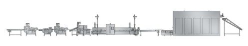 雞米花生產(chǎn)線(xiàn)把混合好的原料經(jīng)過(guò)模板成型(或者切好的雞肉塊),上粉,上稠漿,上粉,滾筒上粉,油炸,速凍等工藝做出不同厚度不同形狀的雞米花。模板可以生產(chǎn)不同形狀的雞米花產(chǎn)品通過(guò)模板更換產(chǎn)品。全自動(dòng)雞塊生產(chǎn)線(xiàn)適用于肉類(lèi)、水產(chǎn)、蔬菜、奶酪以及它們混合料。雞米生產(chǎn)線(xiàn)的需要配置前處理設(shè)備和后處理設(shè)備:絞肉,混合,油炸,包裝等設(shè)備,鹽酥雞米花生產(chǎn)線(xiàn)與這些配套設(shè)備組成一條完整的快餐調(diào)理生產(chǎn)線(xiàn)。