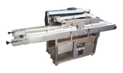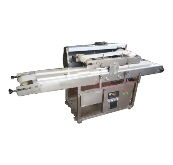 鮮肉切片機(jī)切的是對(duì)雞胸肉的橫向(水平)整肉一次性多片切割,還可以一次性把整個(gè)雞胸肉切成蝴蝶形或者心形的形狀也就是把一塊完整的雞胸肉放在機(jī)器這邊的傳送帶,傳送帶傳送過(guò)去后這一塊肉就全切好了。
