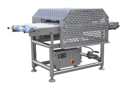 鮮肉切片機切的是對雞胸肉的橫向(水平)整肉一次性多片切割,還可以一次性把整個雞胸肉切成蝴蝶形或者心形的形狀也就是把一塊完整的雞胸肉放在機器這邊的傳送帶,傳送帶傳送過去后這一塊肉就全切好了。