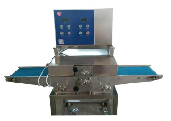 【 .輸送帶為寶石紋,厚度3mm,輸送帶與刀口幾乎貼合,肉片不會卷到輸送帶內(nèi)。