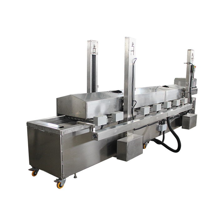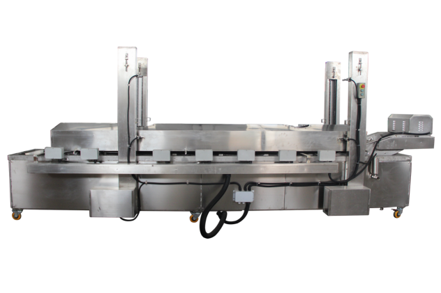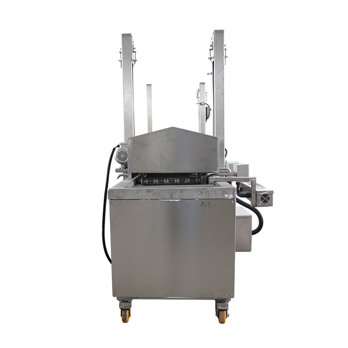 自動(dòng)油炸機(jī)是連續(xù)炸物機(jī),食品從機(jī)體的進(jìn)口端輸入后,隨輸送帶在熱油中通過時(shí)被油炸熟化,并從機(jī)體的出口端輸出。